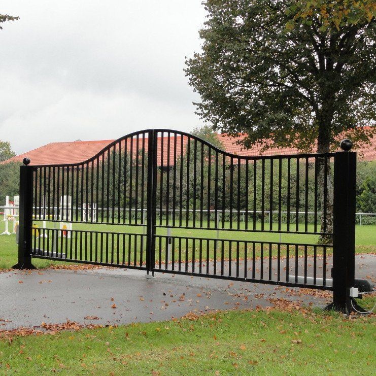 - Gesamtlösungen mit Nebentüren, feststehenden Zaunelementen und Sichtschutzwänden